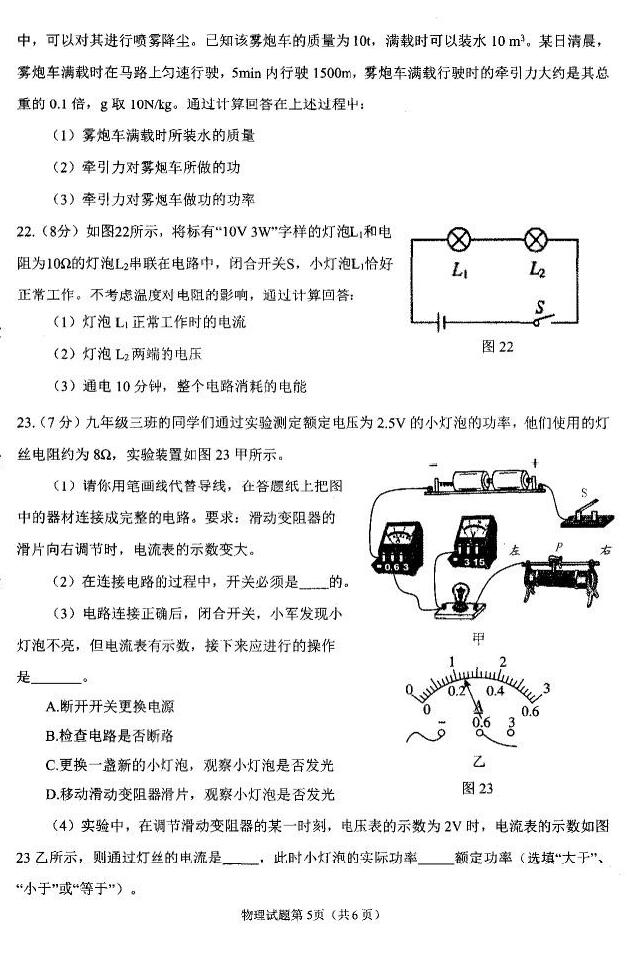 2018山东济南天桥九年级复习调查物理试题(图片版)(5)