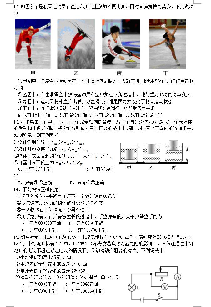 2018山东泰安岱岳新城实验中学中考物理模拟试题(图片版)(3)
