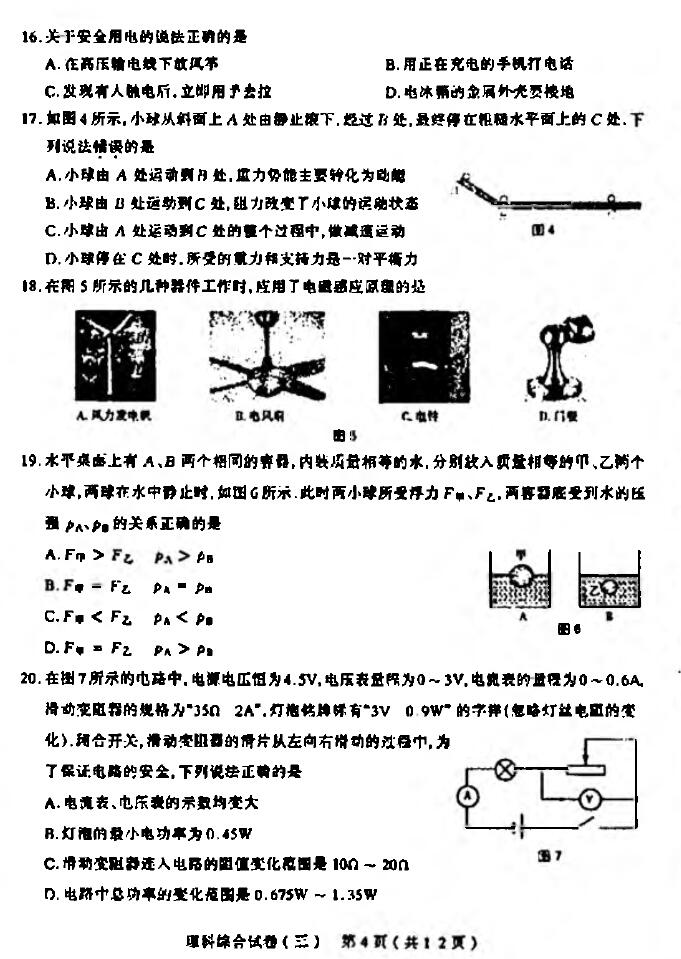 2018山西太原初中毕业班综合测试(三)物理试题(图片版)(2)