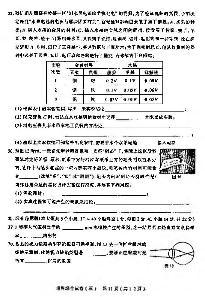 2018山西太原初中毕业班综合测试(三)物理试题(图片版)(5)