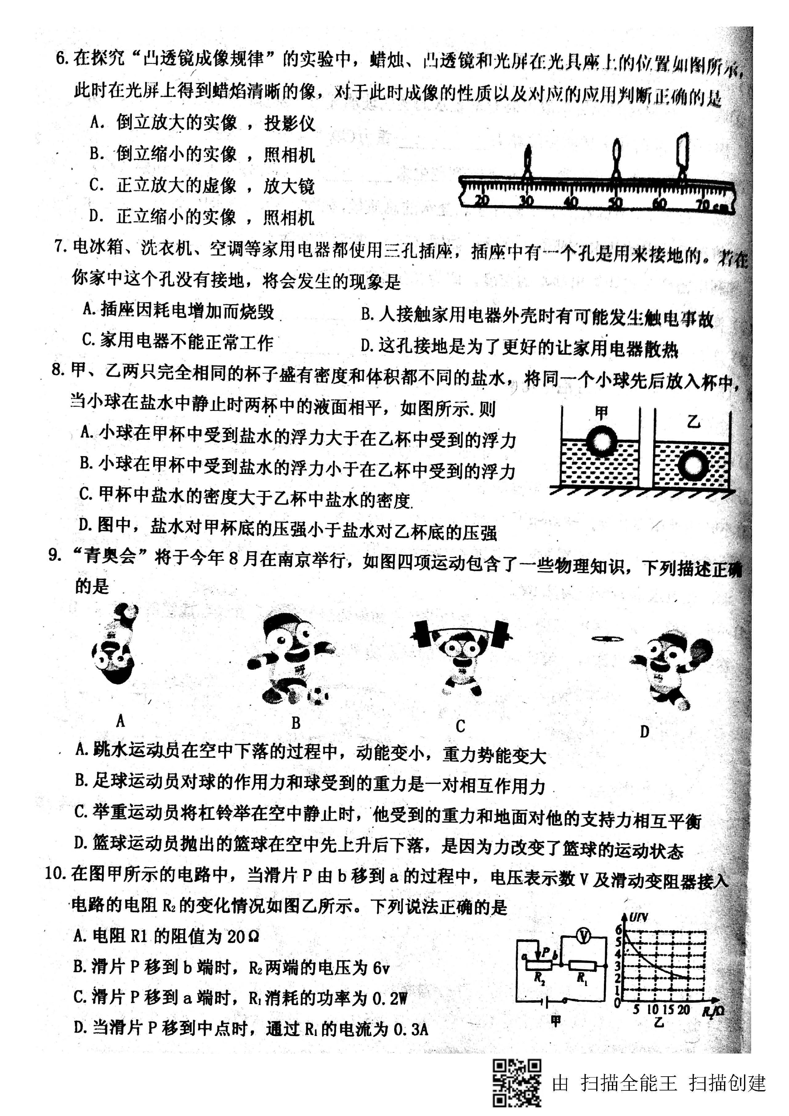 2018山西太原山大附中九年级物理摸底试题(图片版)(2)