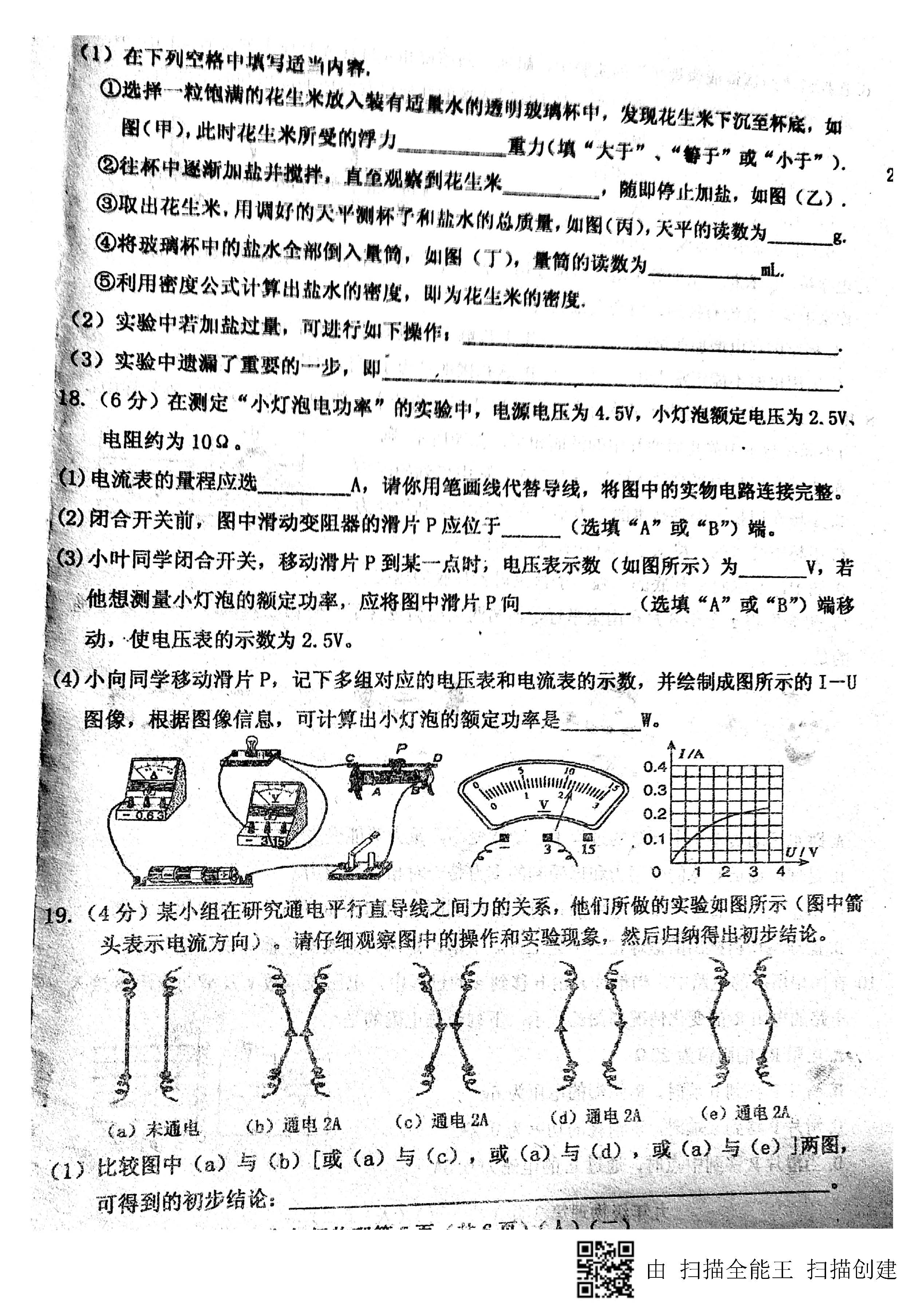2018山西太原山大附中九年级物理摸底试题(图片版)(5)