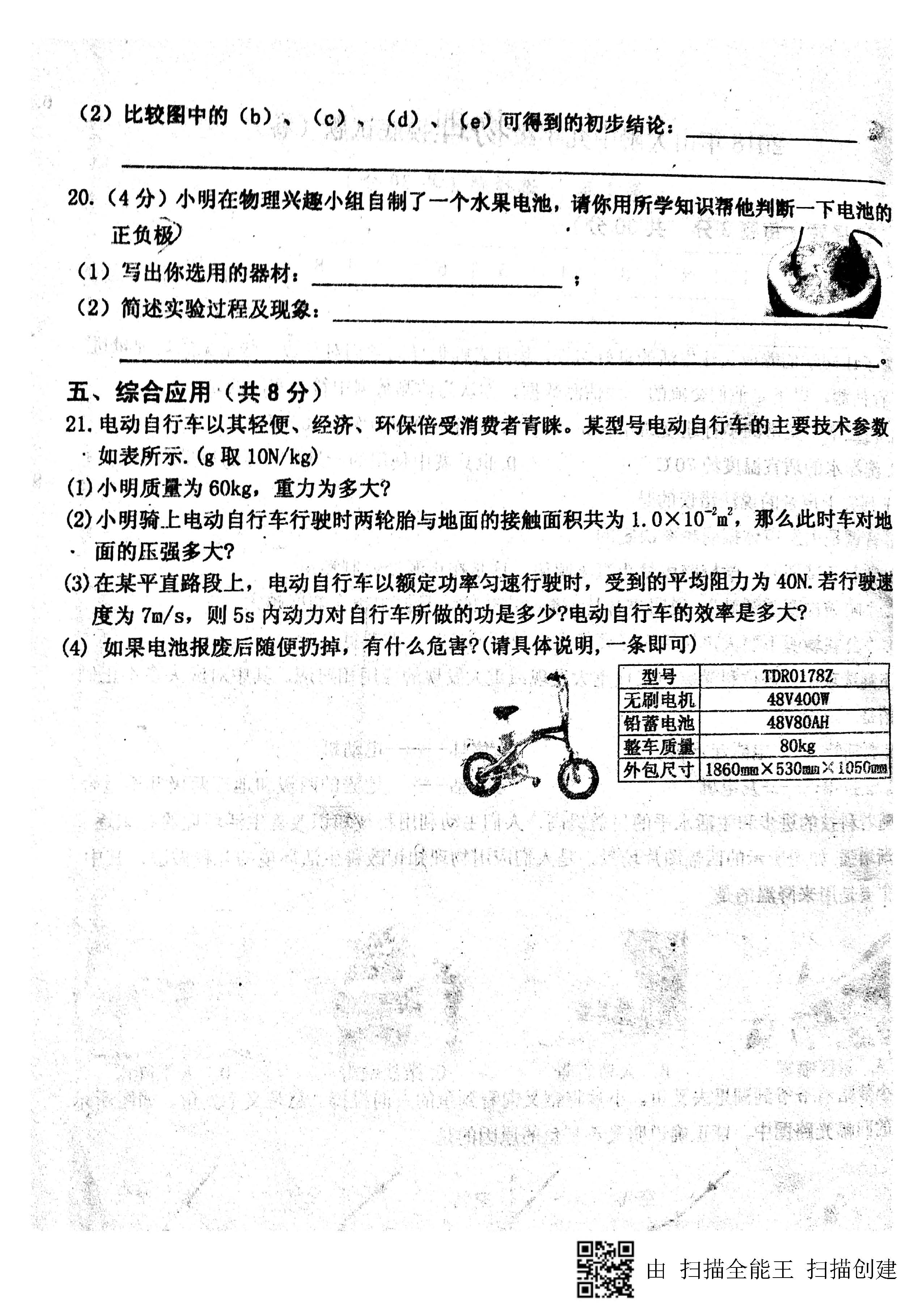 2018山西太原山大附中九年级物理摸底试题(图片版)(6)