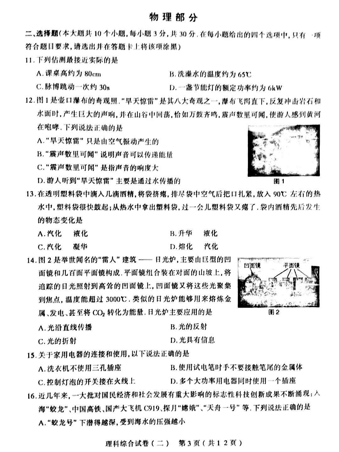 2018山西太原初中毕业班综合测试(二)物理试题(下载版)