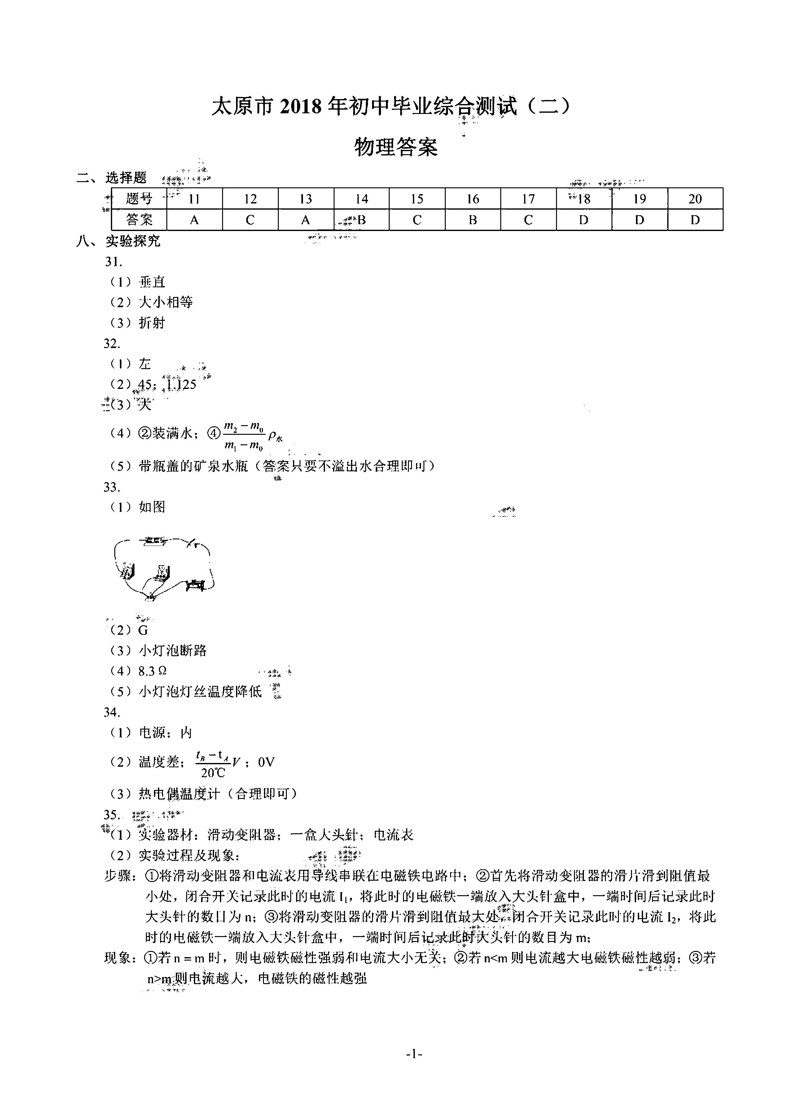 2018山西太原初中毕业班综合测试(二)物理答案(下载版)如下: