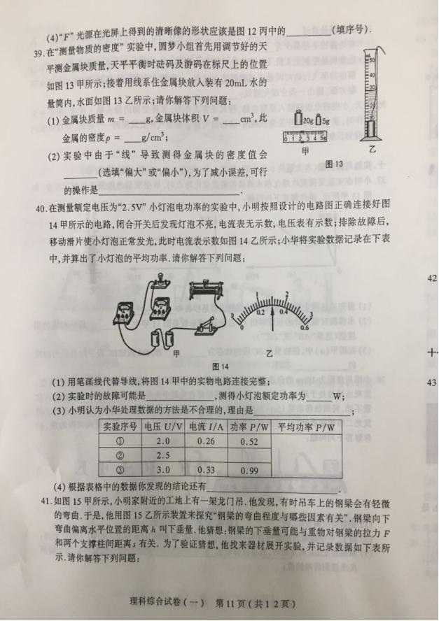 2018山西太原九年级一模考试物理试题(图片版)(4)