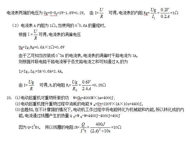 2018安徽宣城奋飞学校初三下物理模拟试卷答案(图片版)(2)