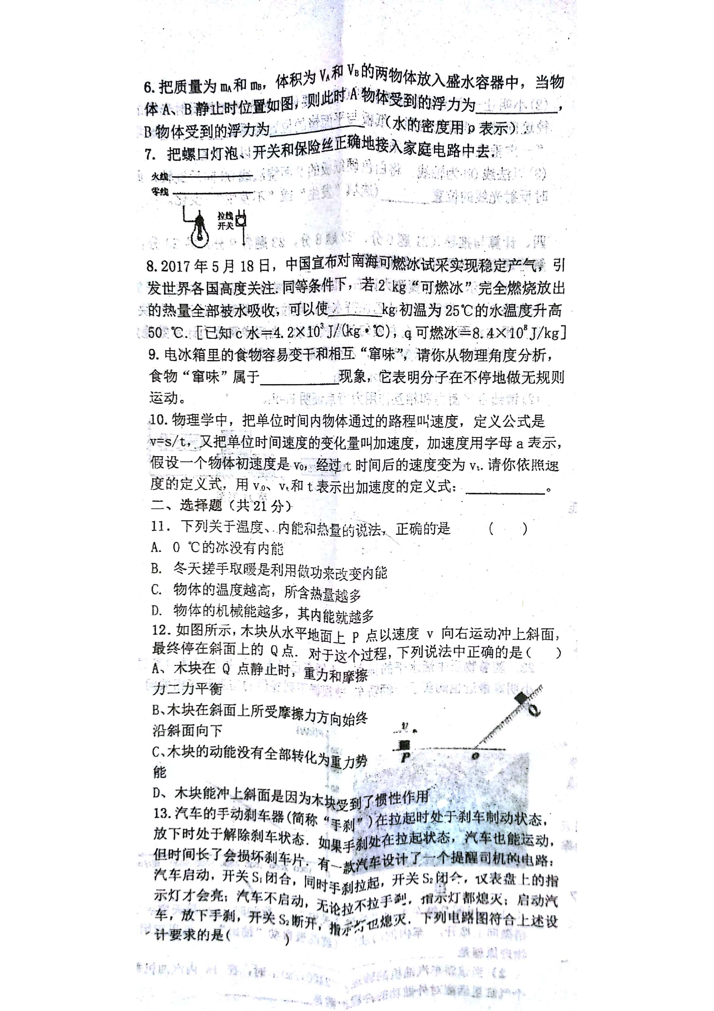 2018安徽天长实验中学中考最后一卷物理试题(图片版)(2)