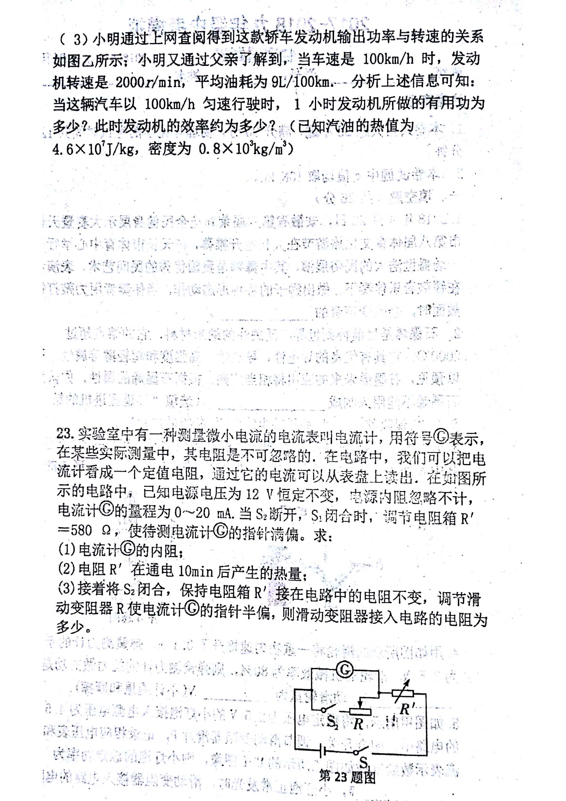 2018安徽天长实验中学中考最后一卷物理试题(图片版)(6)