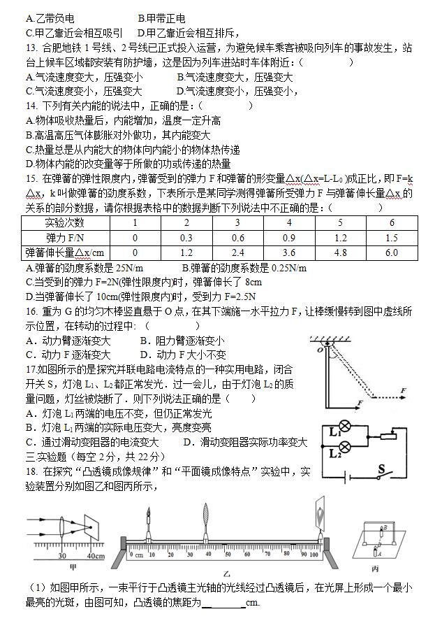 2018安徽合肥蜀山中考物理模拟试卷(图片版)(2)