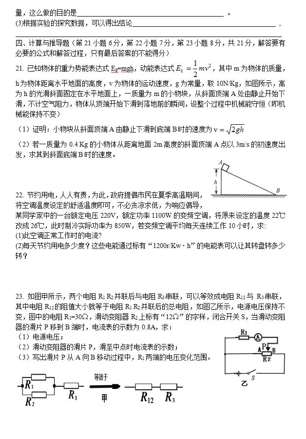 2018安徽合肥蜀山中考物理模拟试卷(图片版)(4)