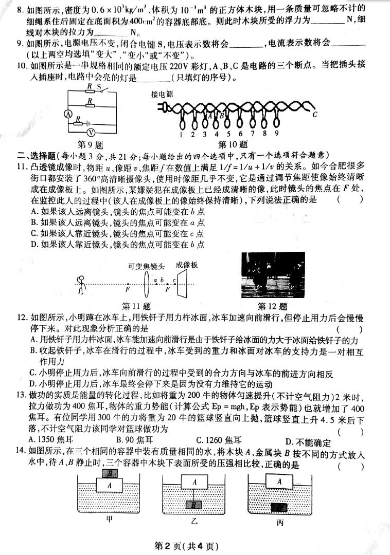 2018安徽省城名校内部信息物理交流卷(二)(图片版)(2)