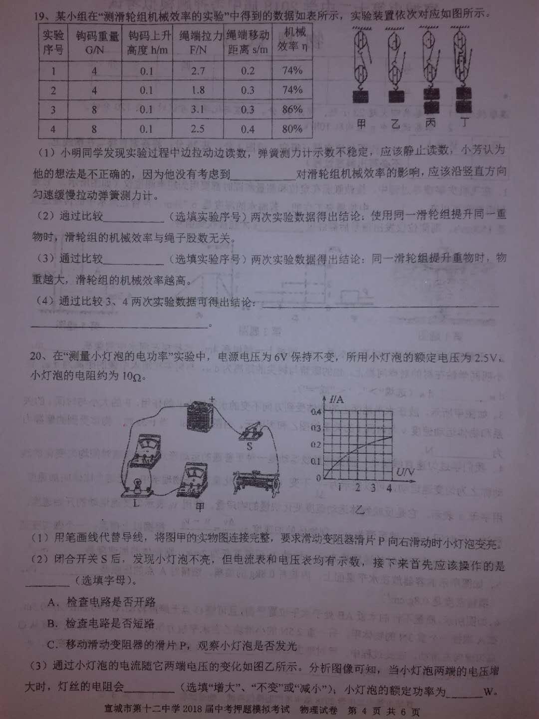 2018安徽宣城十二中中考物理押题卷(图片版)(4)