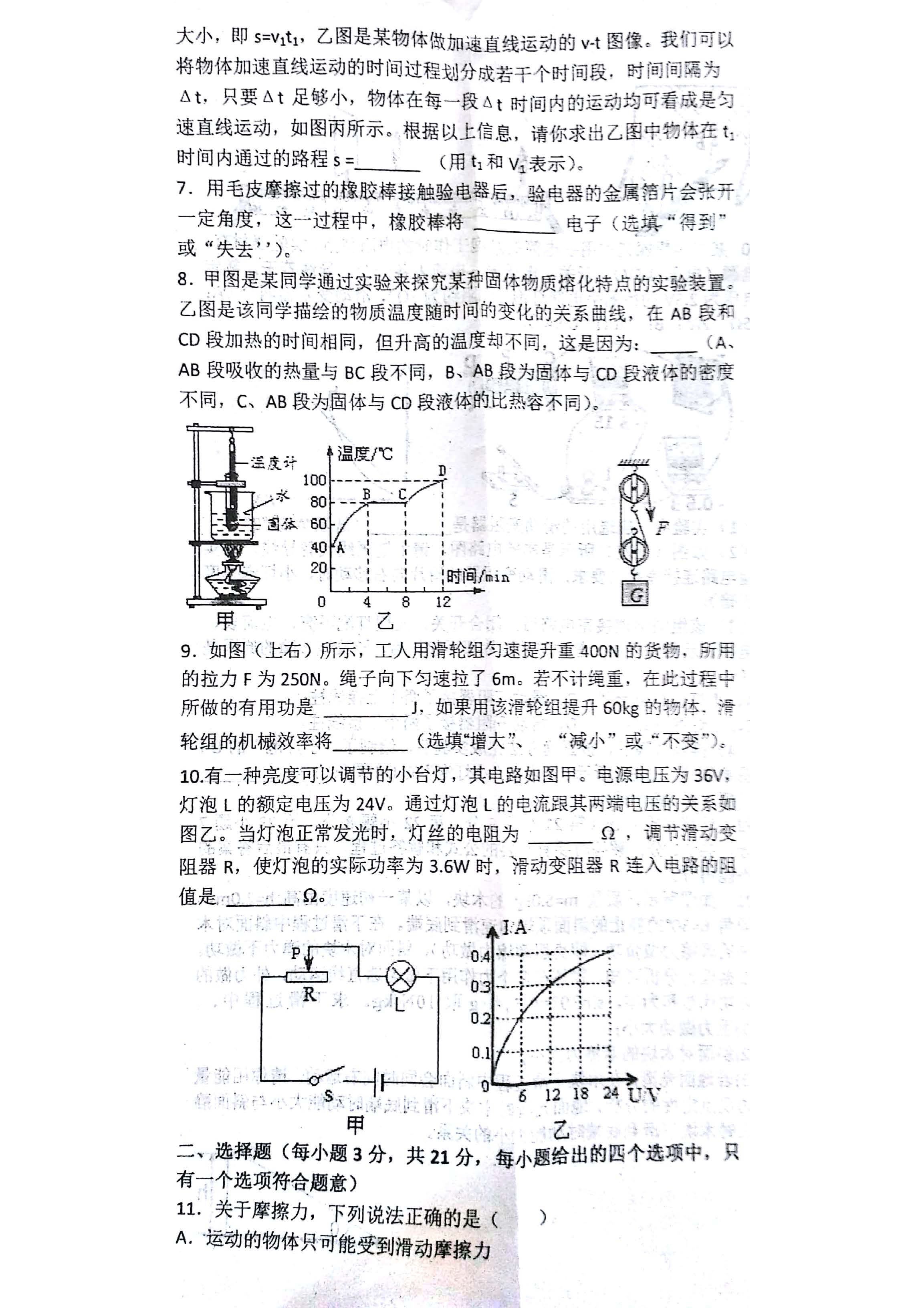 2018安徽天长实验中学九年级四模物理试题(图片版)(2)