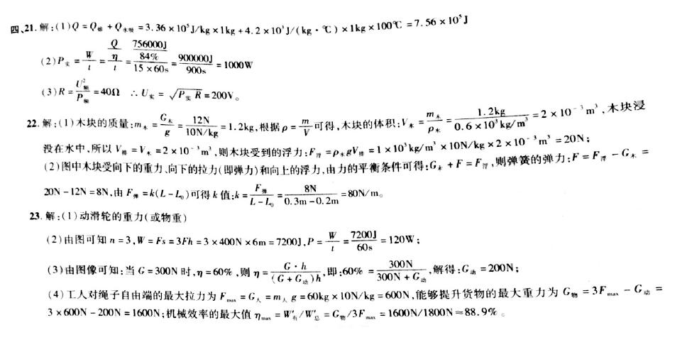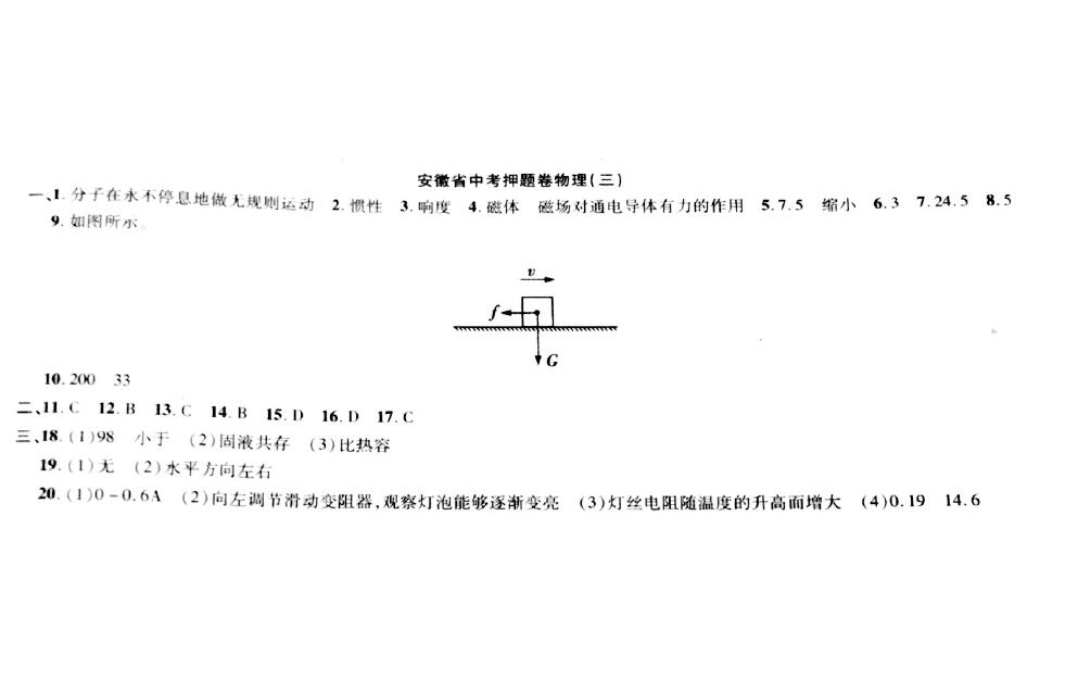 2018安徽中考物理押题卷(三)答案(图片版)如下: