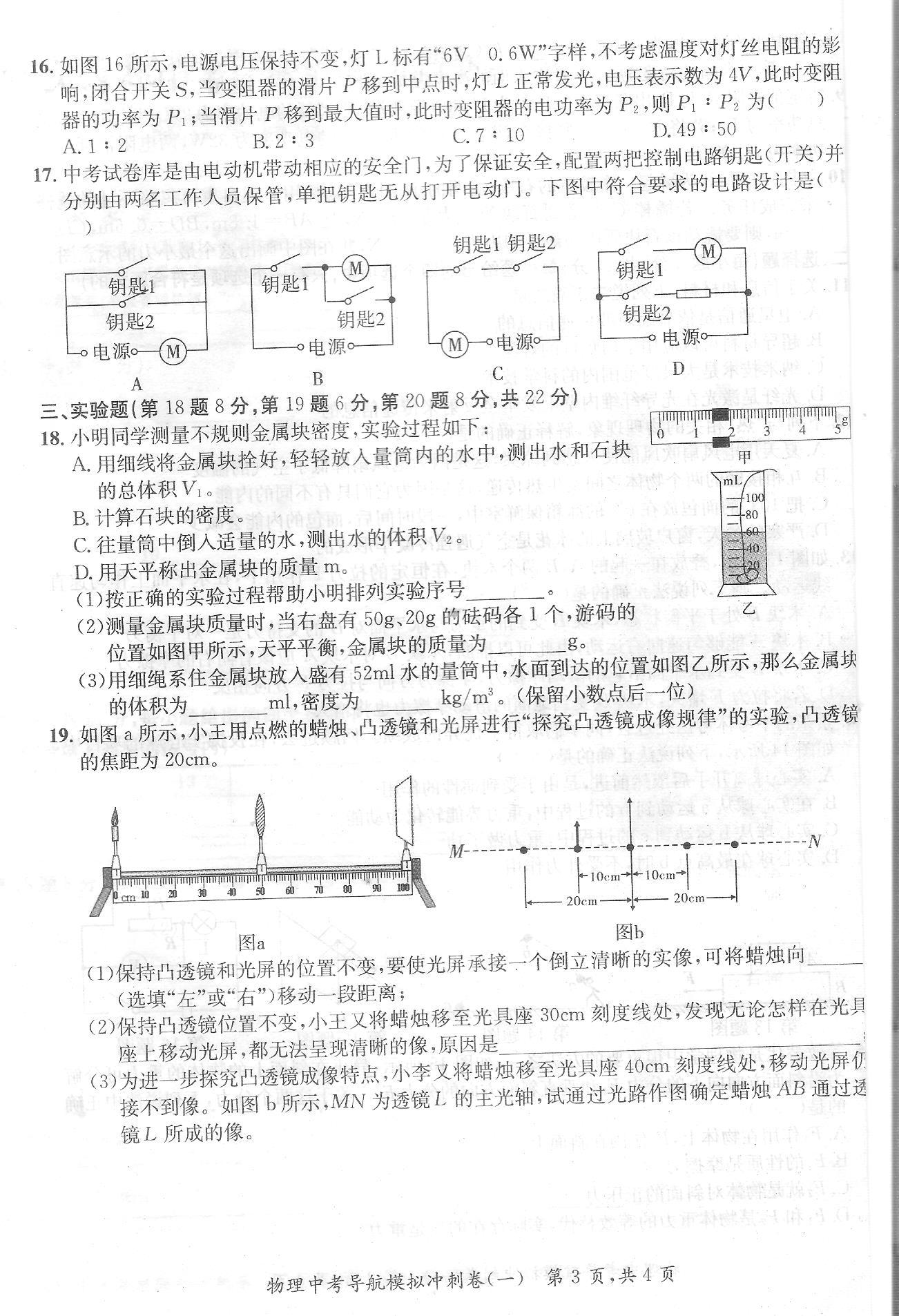 2018安徽省中考导航模拟冲刺物理试题(一)(图片版)(3)