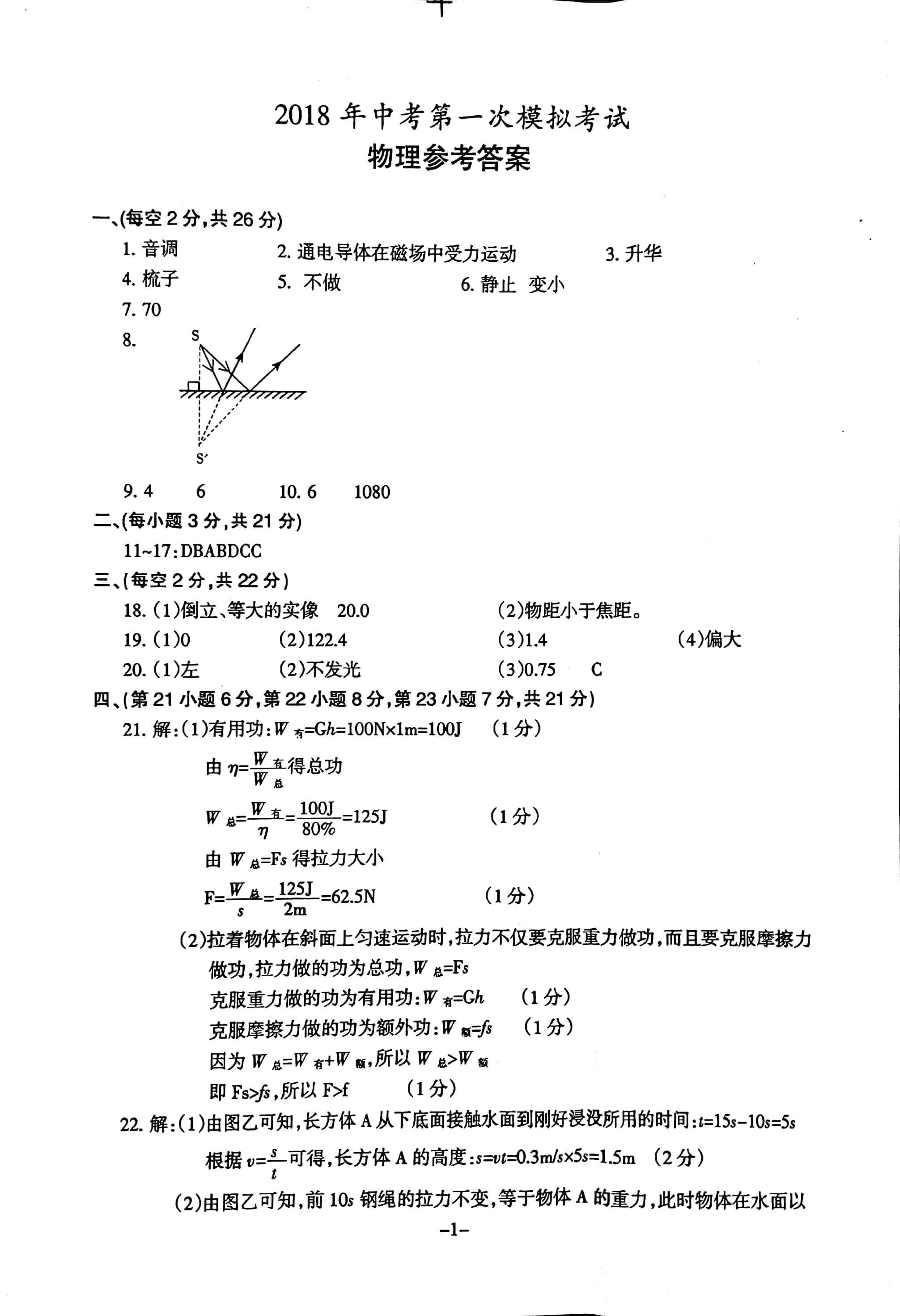 2018安徽明光中考一模物理试题答案(图片版)如下: