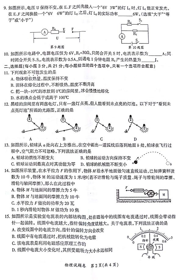 2018安徽明光中考二模物理试题(图片版)(2)