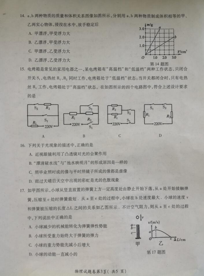 2018安徽宣城初中学业水平考试物理模拟试题(图片版)(3)