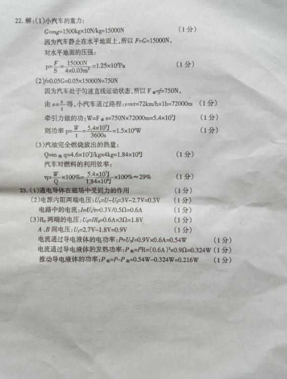 2018安徽定远七里塘中学九年级下二模物理试题答案(图片版)(2)