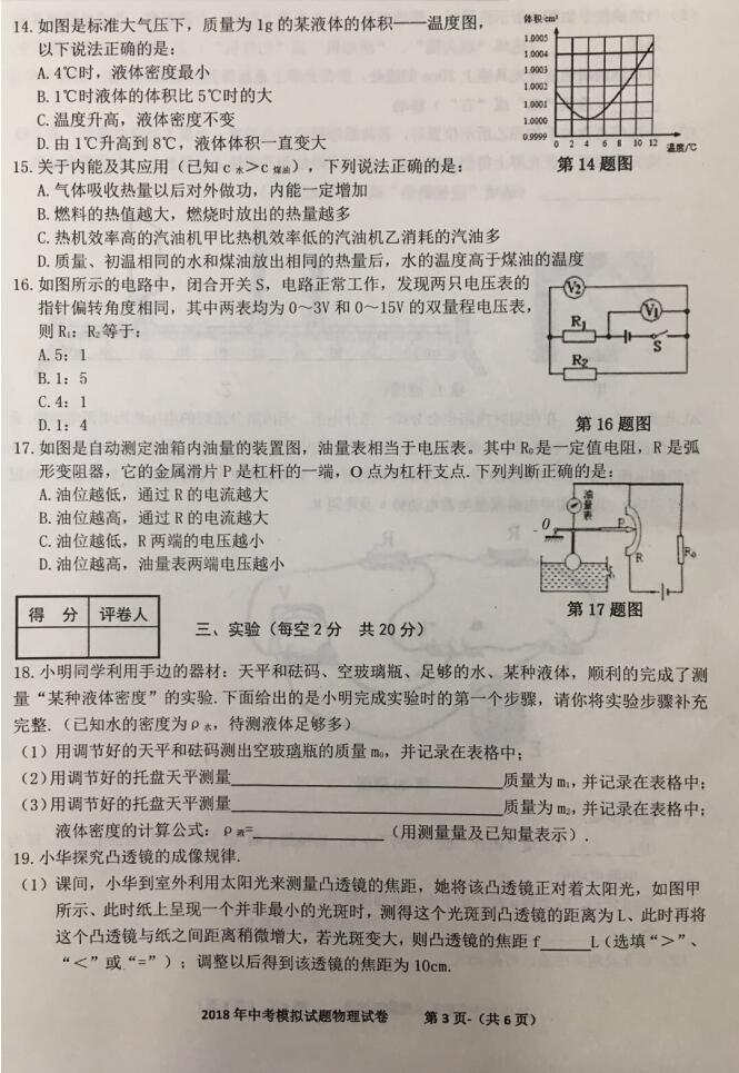 2018安徽合肥新站中考物理一模试卷(图片版)(3)
