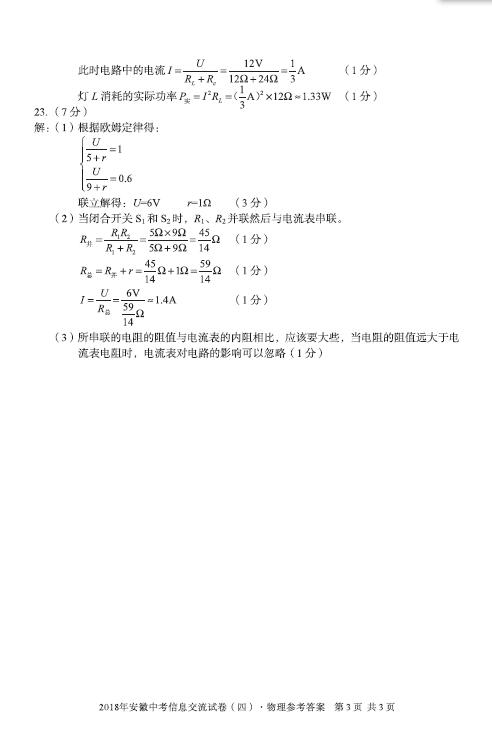 2018安徽中考信息交流卷物理(四)答案(图片版)(3)