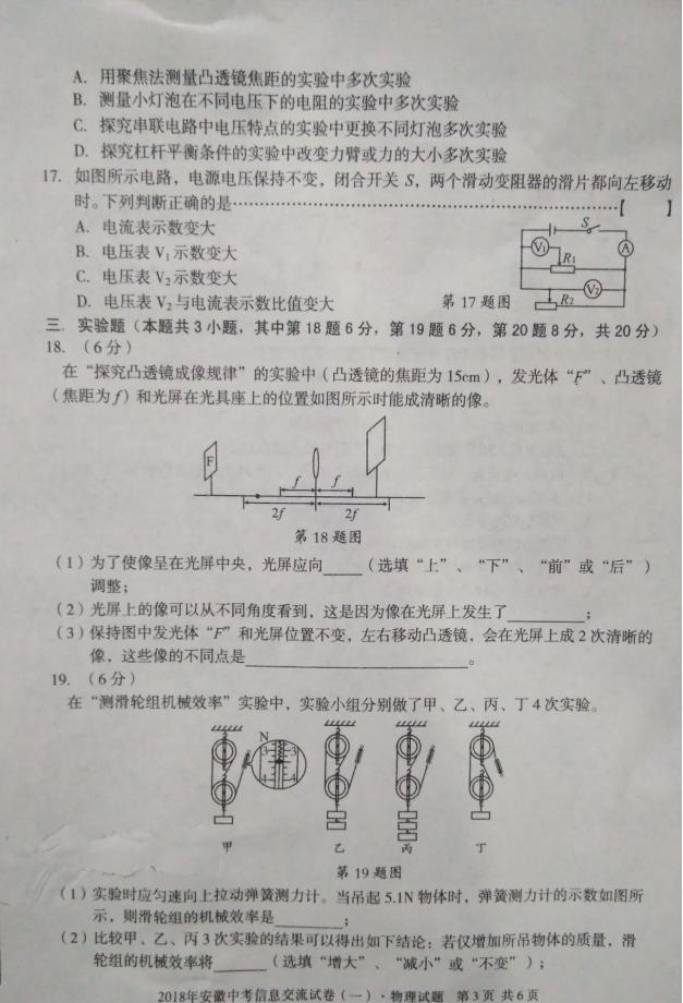 2018安徽中考信息交流卷物理(一)(图片版)(3)