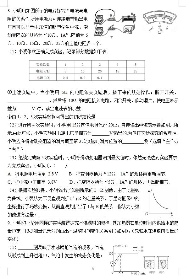 2018江苏泰兴济川中学中考物理考前练习(图片版)(6)