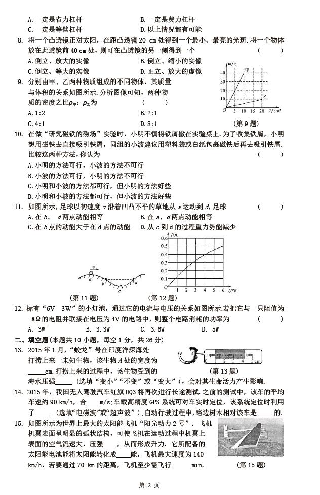 2018江苏南京中考物理押题卷(一)(图片版)(2)