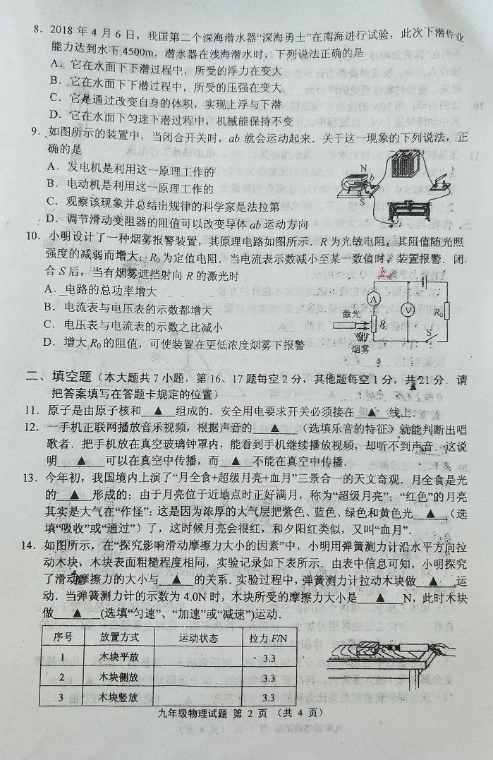 2018江苏连云港中考物理最后一模试题(图片版)(2)
