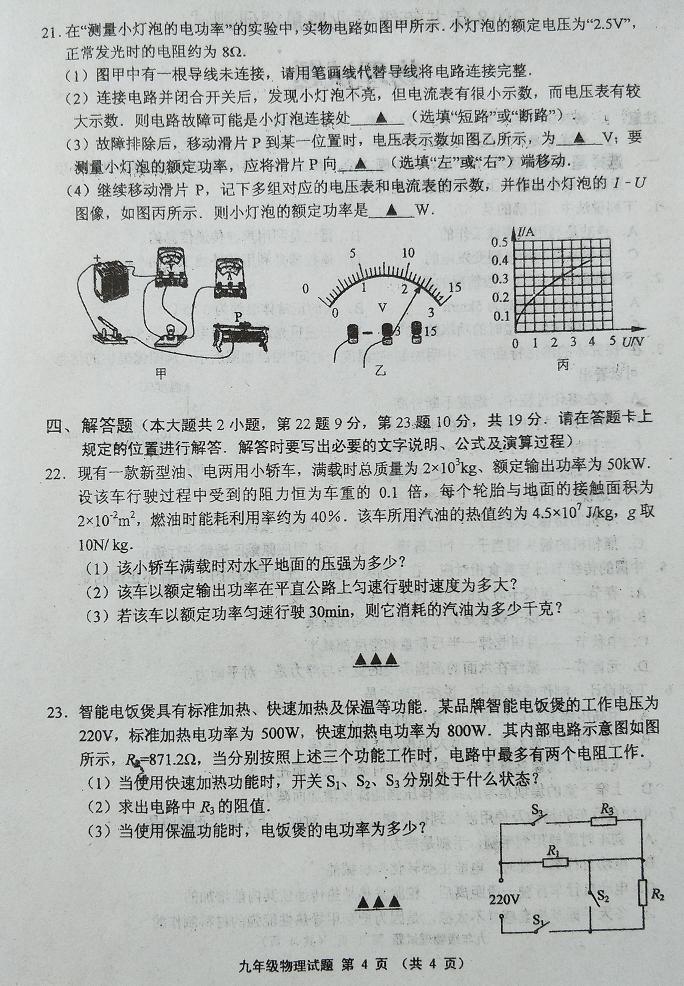 2018江苏连云港中考物理最后一模试题(图片版)(4)