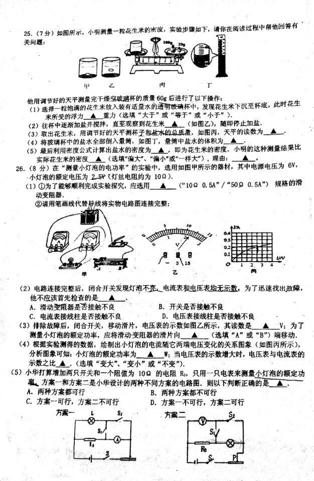 2018江苏东台实验中学中考物理模拟考试三(图片版)(5)