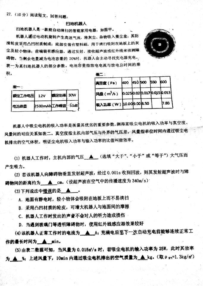 2018江苏东台实验中学中考物理模拟考试三(图片版)(6)