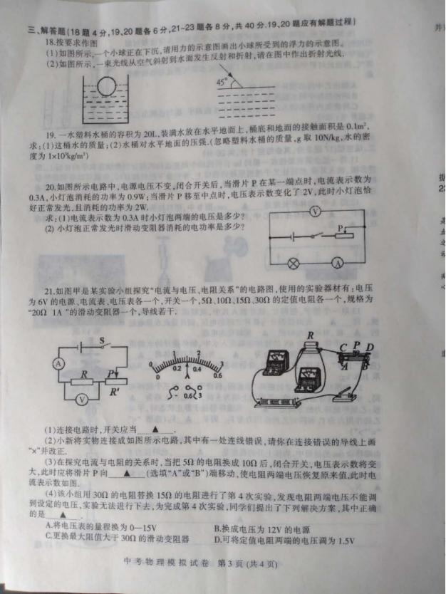 2018江苏徐州中考物理模拟质量测试(三)(图片版)(3)