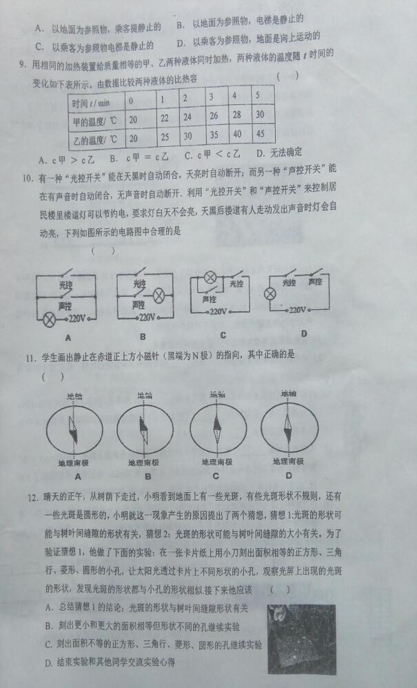 2018江苏盐城滨海第一中学九年级物理模拟试卷(图片版)(2)