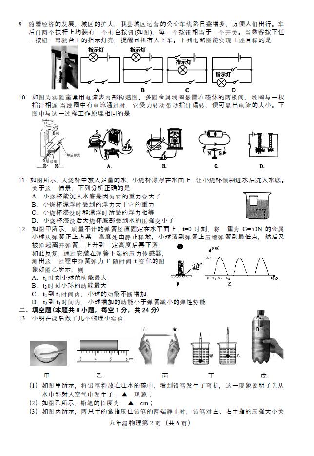2018江苏盐城阜宁九年级下二模物理试题(图片版)(2)