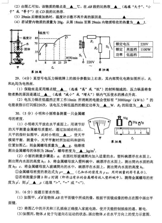 2018江苏海安九年级学业水平测试(物理)(图片版)(3)
