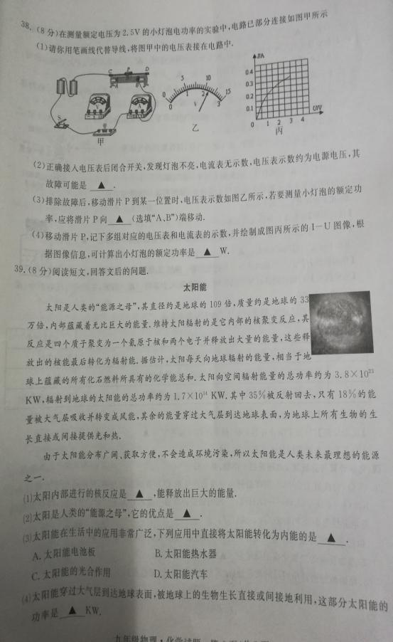 2018江苏徐州九年级第一次质量检测物理试题(图片版)(5)
