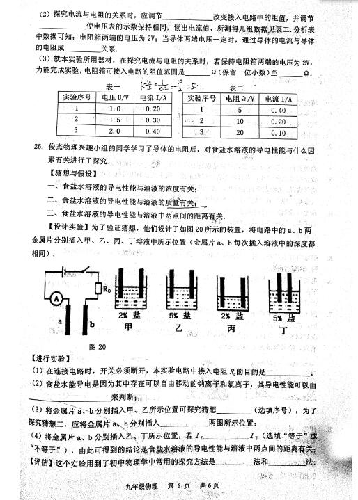 2018江西景德镇九年级第三次质检物理试卷(图片版)(6)