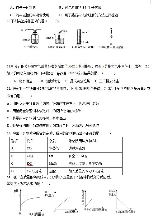2018宁夏银川十八中初三化学第一次模拟试题(图片版)(2)