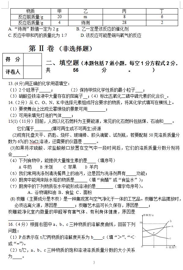 2018内蒙古杭六中初三化学中考四模试题(图片版)(3)