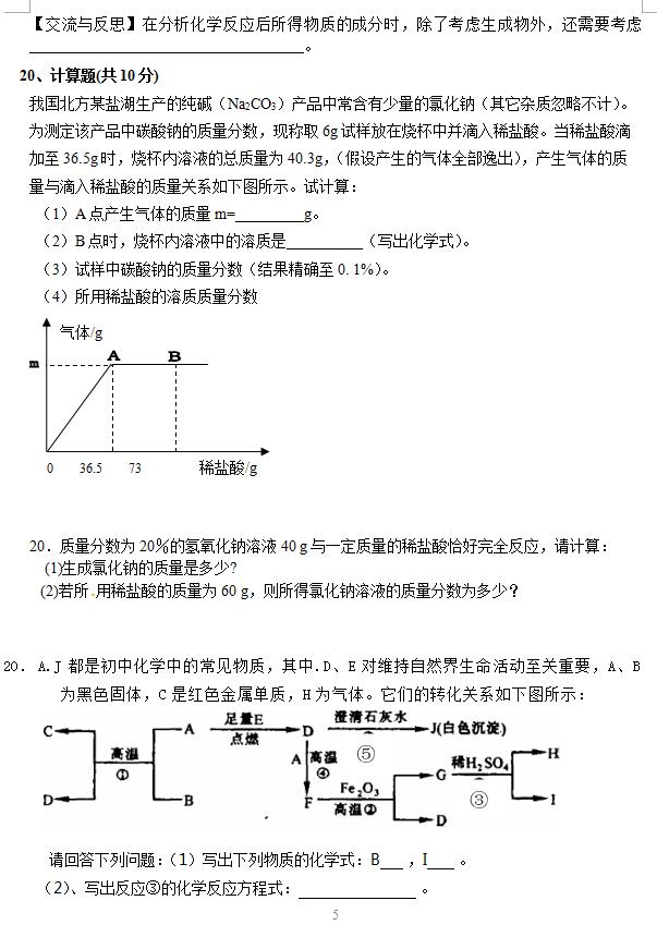 2018内蒙古杭六中初三化学中考四模试题(图片版)(5)