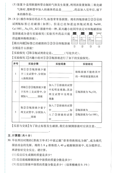 2018-2019年广西初中化学中考模拟复习卷一(图片版)(6)