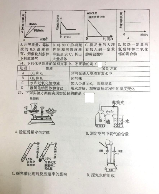 广东深圳宝安中2019九第一学期化学一模中考试卷(图片版)(5)