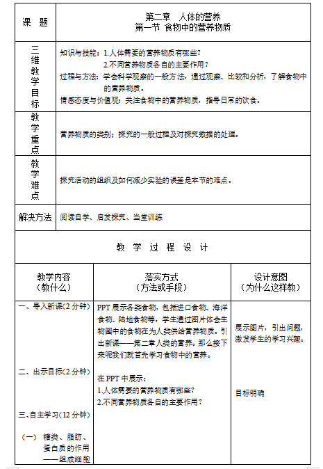 2019人教版生物七年级下册4.2.1食物中的营养物质(图片版)