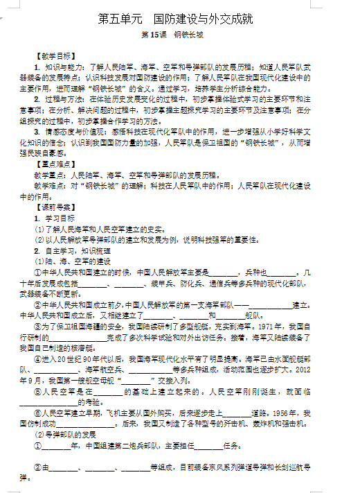 2019人教版八年级历史下第15课钢铁长城(图片版)