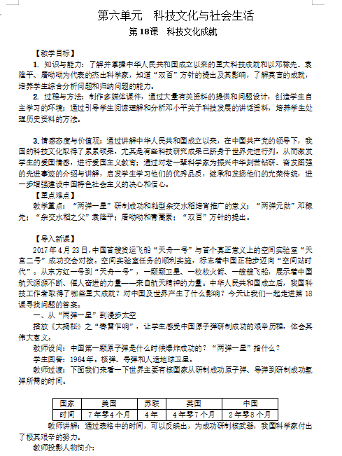 2019人教版八历史下册第18课科技文化成就(图片版)