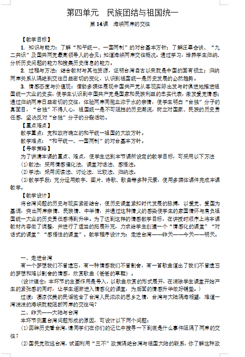 2019人教版八历史下第14课海峡两岸的交往(图片版)