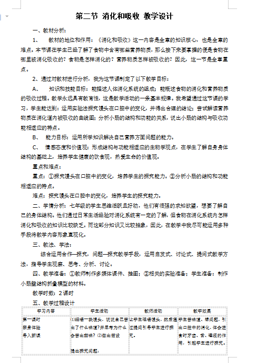 2019人教版七下生物第二章第二节消化和吸收(图片版)