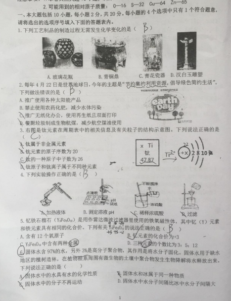 安徽合肥45中2019一模化学试题卷(图片版) 2019-04-04 18:31:35佚名 点击免费领取中考核心考点资料! 中考网为初中学生精心整理了2019中考化学模拟题,希望能对各位学生及家长有所帮助。下面是《2019中考化学模拟题训练》,供大家参考